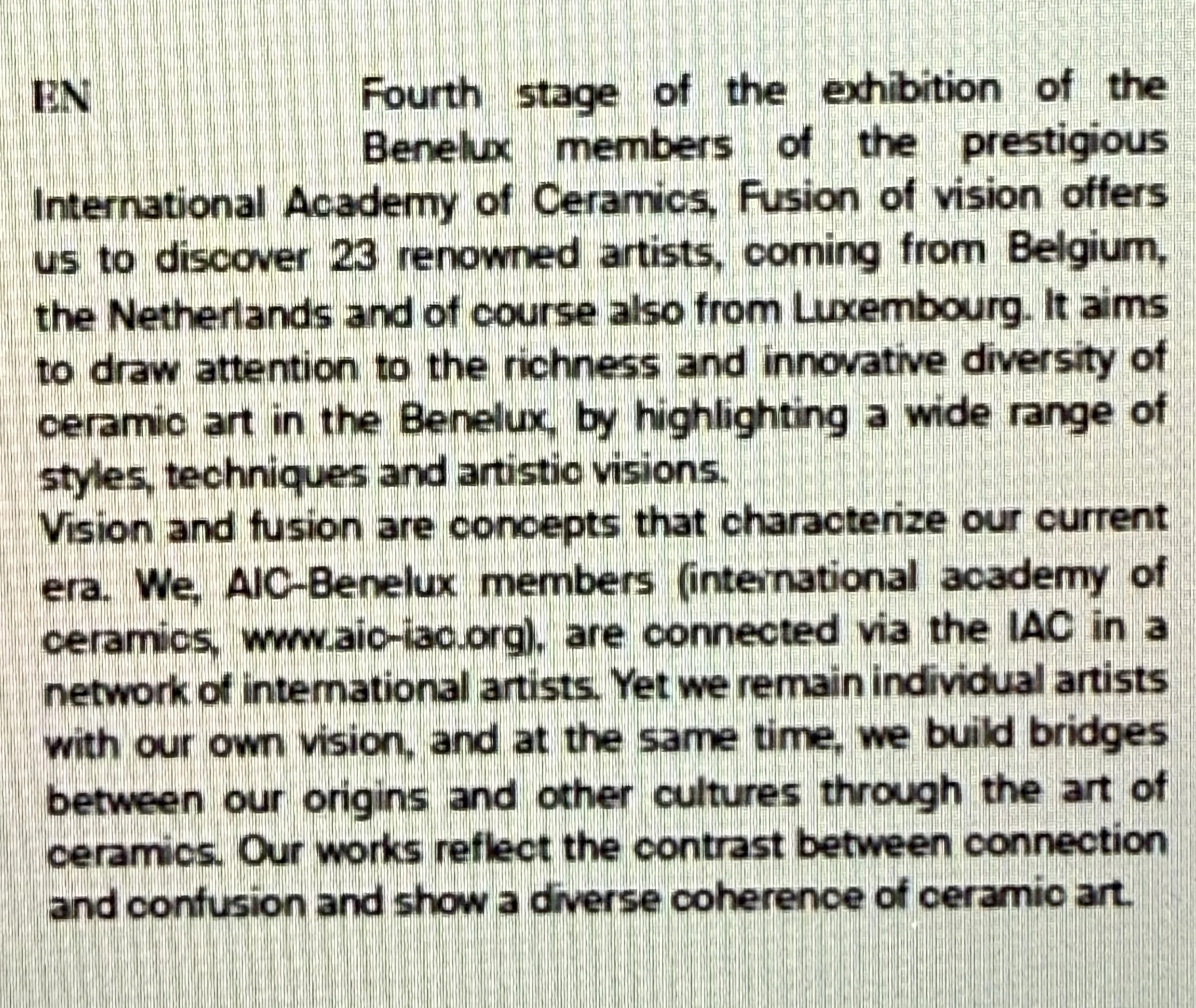 The 4th group exhibition in the country Luxembourg of the traveling group exhibition “Vision and Fusion” of the IAC Benelux group.